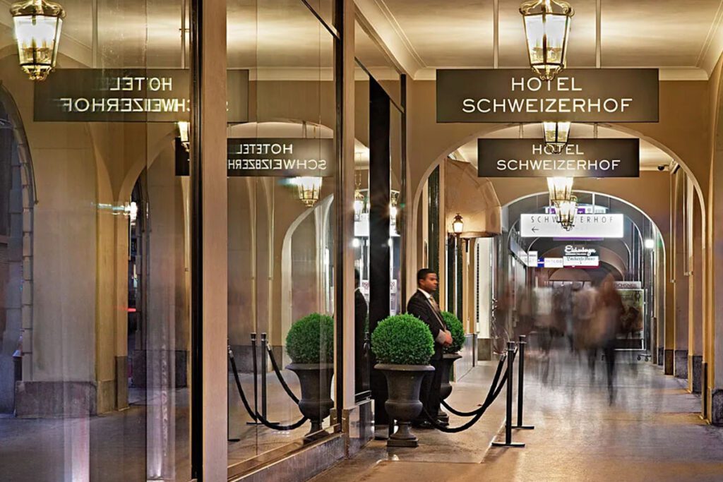 The Hotel Schweizerhof is very close to the main station. A beautiful building with a rooftop bar, spa and breathtaking views of the Alps. Murano glass and artistic paintings decorate this wonderful hotel. The hotel is very modern, but not in the least bit contemporary. There are no clean lines or strip lighting here, rather oak panels and crystal chandeliers. The Hotel Schweizerhof has a fully equipped spa, steam bath, sauna and pool. Perfect for a little R’n’R with your beautiful companion. Plunge pools and a hammam set the spa apart from the usual hotel wellness centres. The spa also offers a wide range of treatments, from facials and massages to pedicures and more.